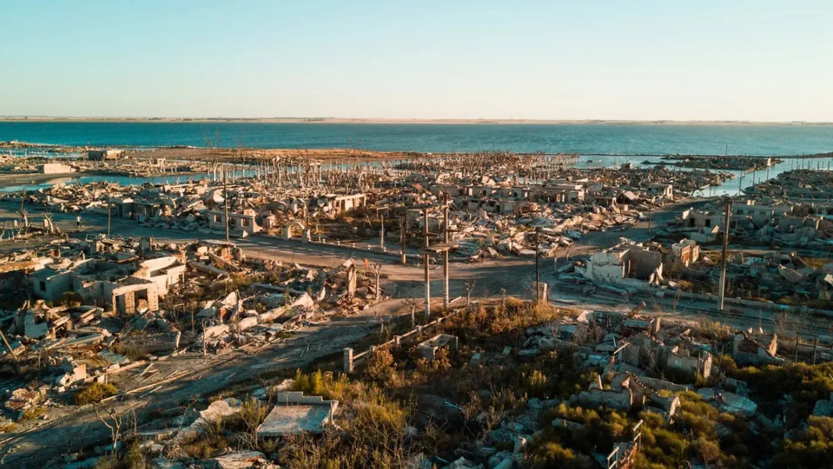 “Este pueblo en la provincia de Buenos Aires quedó sumergido bajo las aguas de una laguna salada durante más de 25 años. En 2009, las aguas retrocedieron y dejaron al descubierto las ruinas, que ahora son un testimonio fantasmagórico de la naturaleza y la resiliencia humana”.