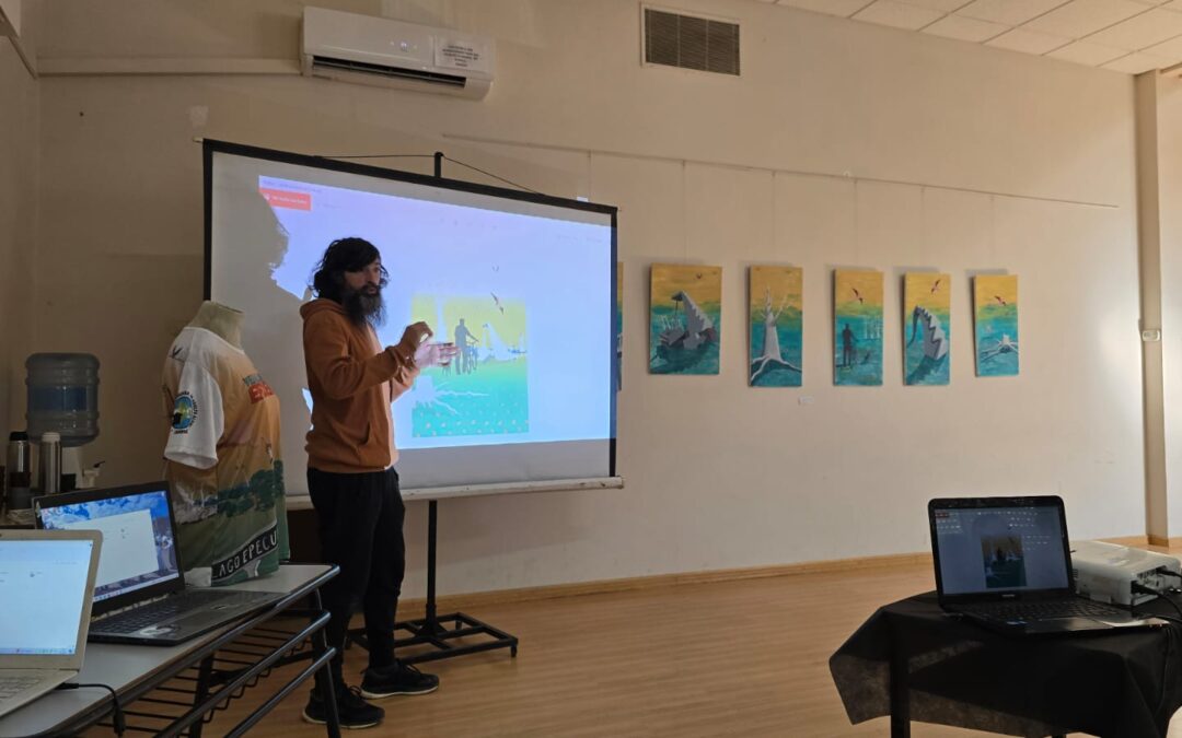 Durante el recorrido, Gustavo compartió con el grupo su proceso creativo, especialmente el trabajo detrás del diseño gráfico que ilustró la remera oficial de la carrera “Vuelta al Lago Epecuén”, tomando como inspiración elementos de la identidad local.