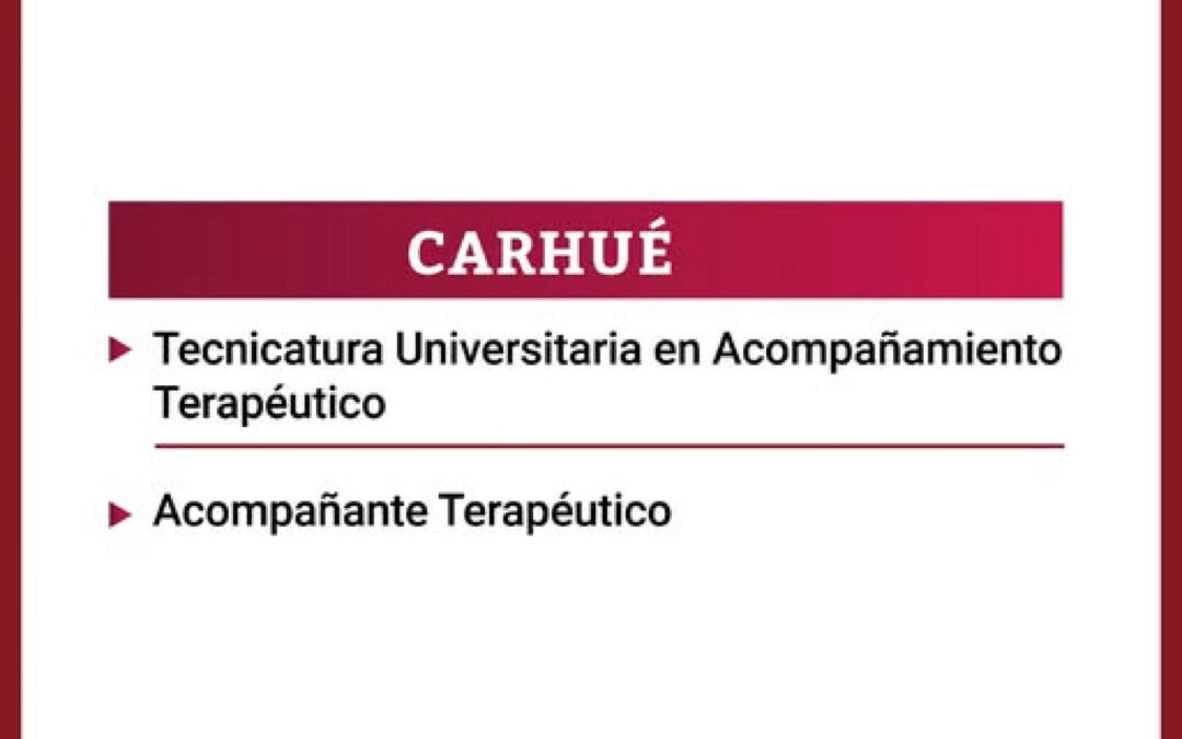 La oferta incluye la carrera de Acompañante Terapéutico y la Tecnicatura Universitaria en Acompañamiento Terapéutico, ambas en modalidad presencial.